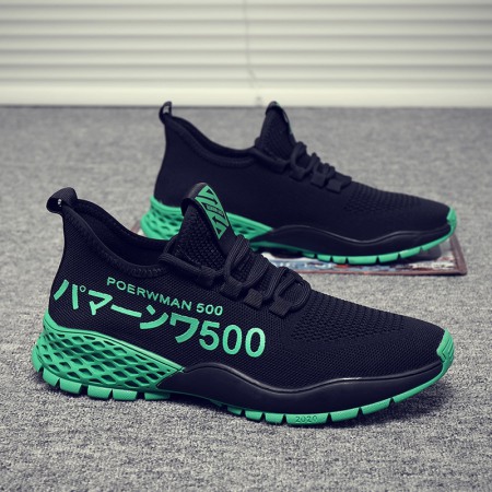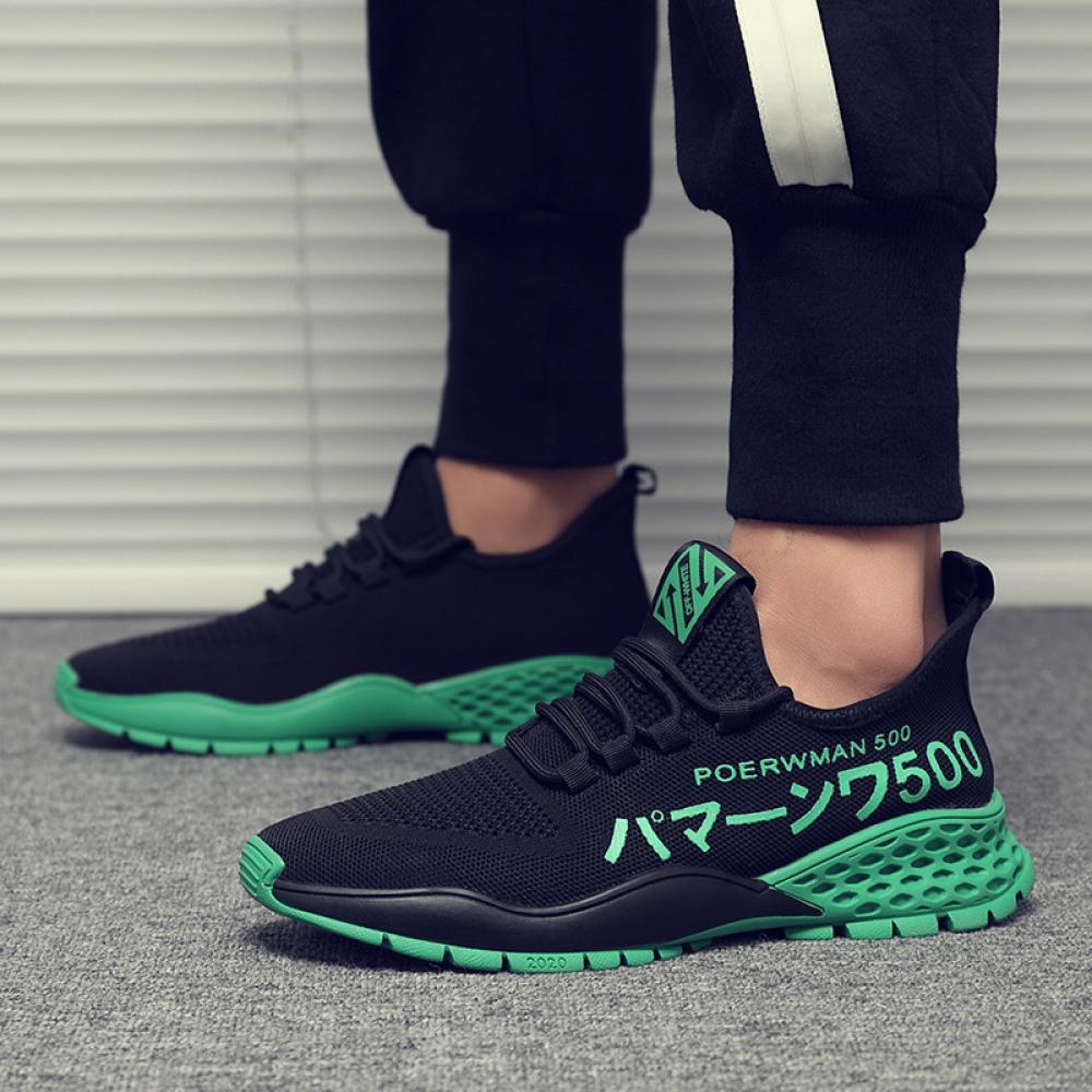 Men's Sport Gym Running Shoes Walking Shoes Casual Lace Up Lightweight Black-Green